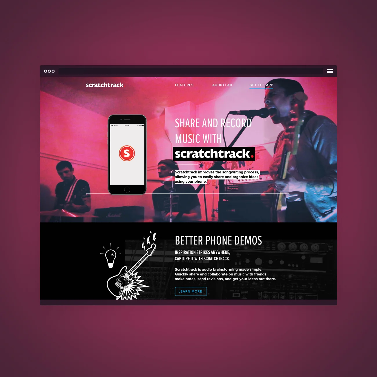 Scratchtrack is a personal project of my close friend Justin Renninger. It is designed to provide bands with a better way of organizing and sharing demos, and contributing to the songwriting process. I took on this speculative rebranding because the project took on a strong personal interest to me, both as a designer and as a musician who uses it. Download the app here.